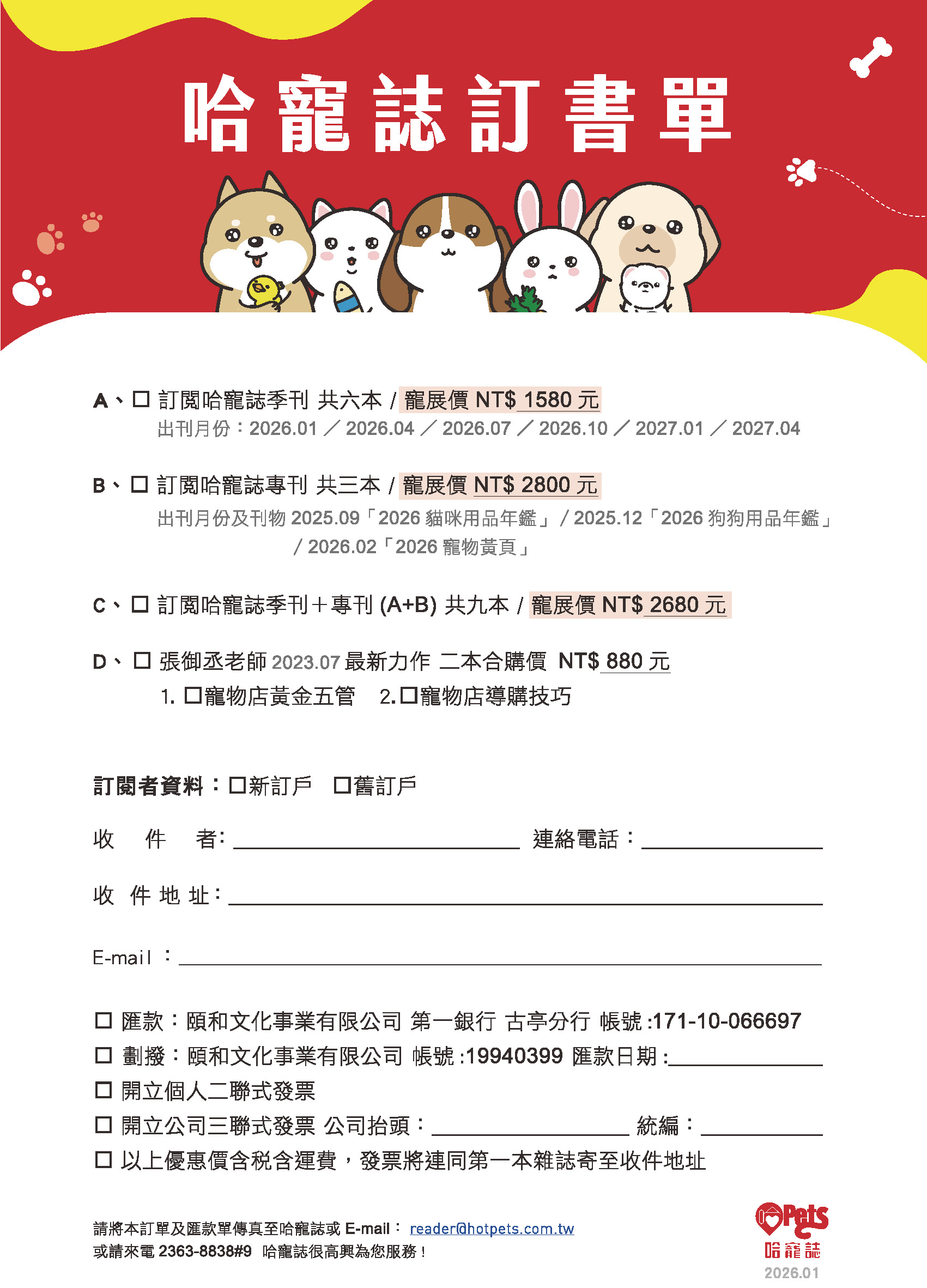 親愛的《哈寵誌》讀者您好,除了能在各大超商與書店通路買到當期《哈寵誌》之外,頤和文化事業還提供以下兩種訂閱方式:
